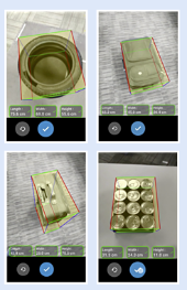 Kisten können unter allen Lichtverhältnissen erfasst werden. Kisten können unbeschriftet, eingepackt und bedruckt mit Abbildungen sein. Zudem können sie zum Beispiel auf einem Verkaufstisch, einem Teppich, einem gefliesten oder zementierten Boden liegen.